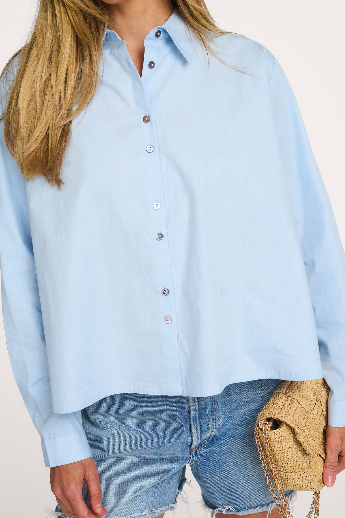 IELINE short sleeves poplin top Light Blue