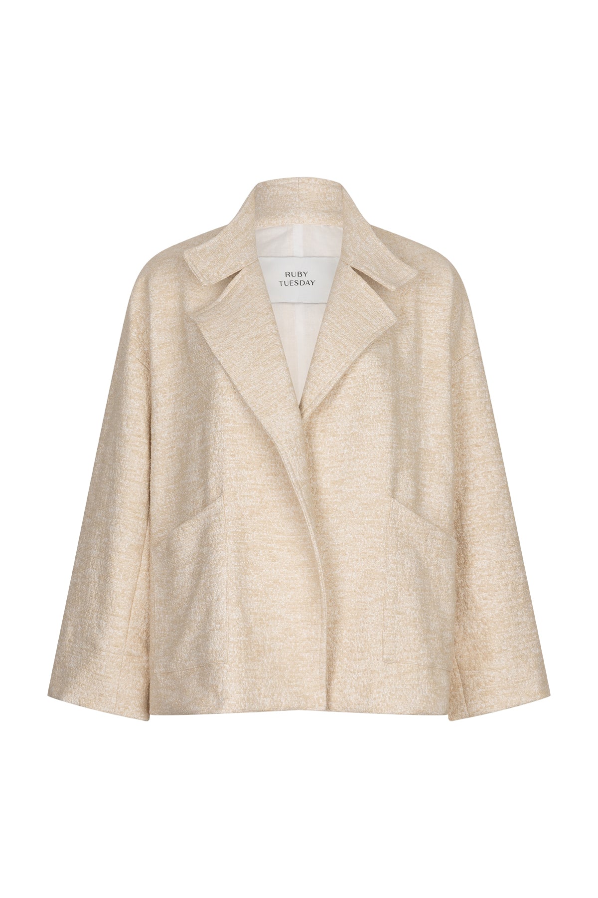 Mari short boxy woolen jacket Taupe with collar