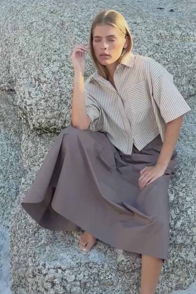 CLODIA Half sleeves shirt Camel stripe