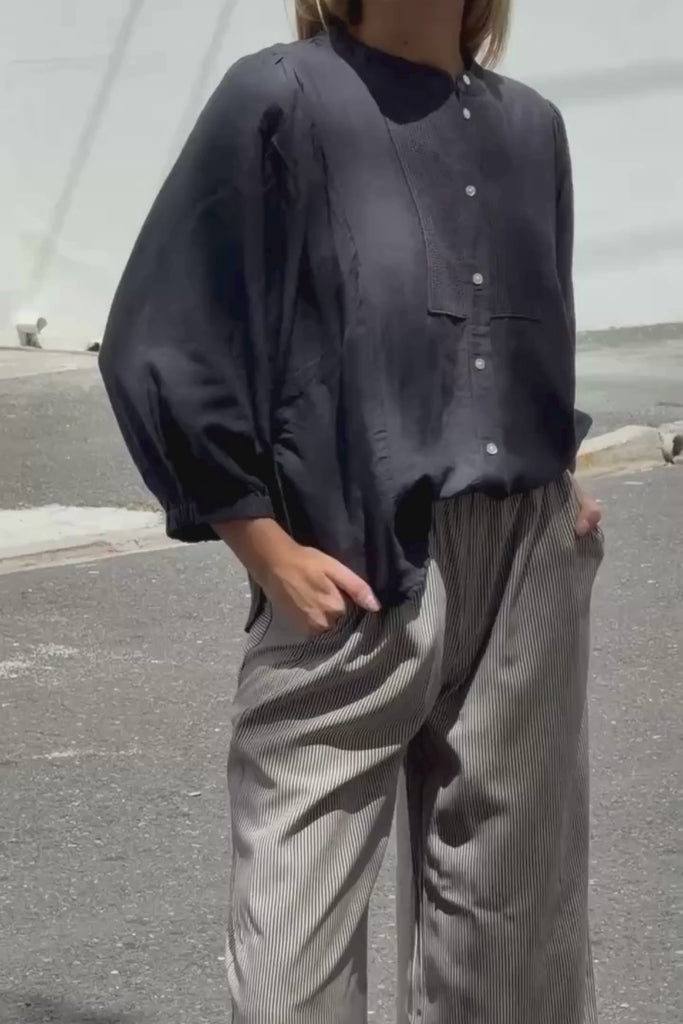 ILLIEZ shirt is een prachtig shirt. Dit shirt is vervaardigd uit een luxueuze linnen viscose blend en straalt tijdloze elegantie uit. Het antraciet kleurenpalet zorgt voor een sophisticated uitstraling, perfect voor de stijlvolle vrouw die waarde hecht aan verfijning en kwaliteit. De hoogwaardige materialen, waaronder Ecovero viscose en Lyocell, garanderen een comfortabel draagcomfort en een duurzame keuze voor uw garderobe. Combineer dit veelzijdige shirt met de ILYSSA Long pull on skirt voor een moeiteloze, chique outfit. Een onmisbaar item dat rust en ingetogen luxe uitstraalt.